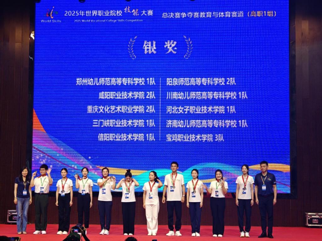 2025年8月31日,在湖南长沙举行的世界职业院校技能大赛(教育与体育赛道)全国总决赛中,我院张静、王娇云老师指导的学生团队与来自全国31个省市的119支队伍同台竞技,凭借扎实的专业能力与出色的现场发挥,荣获总决赛银奖,较去年成绩实现新突破。